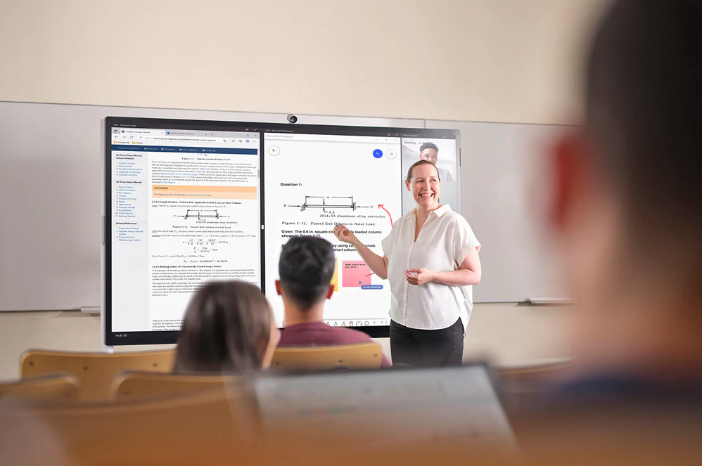 Be heard, be seen, and show your best work in Flipgrid1 videos produced with Studio Mics and HD cameras. Safely hear everyone’s point of view with Dolby® Audio™ and see what they’re sharing with high-resolution displays in Microsoft Teams.1